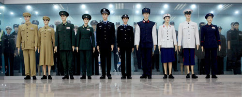 在北京市公安局建局65周年前夕,市局警务保障部装备管理处被装陈列大厅12月16日首度向媒体开放,数十种不同时期的警服样式在此陈列。新中国成立后,警服先后经历了五式、五五式、五八式、六六式、七二式、八三式、八九式、九九式等八次换装,从一个侧面见证了首都公安65年风雨历程。